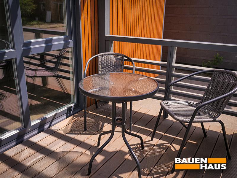 Наш модульний будинок в комплектації одразу з готовою затишною терасою, на якій садовий столик зі стільцями для приємного чаювання. За бажанням ви можете встановити підвісне крісло-кокон, в якому можна зручно влаштуватися разом із книжкою.