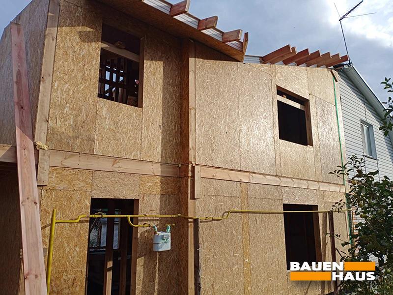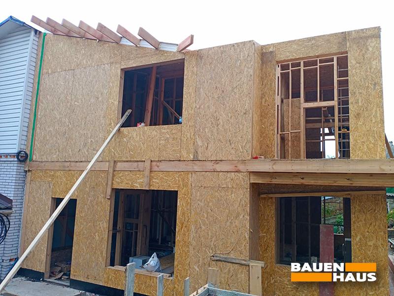 Цей проєкт починався як реконструкція половини, що належить замовникам, дуплекса, з демонтажем другого поверху та добудови нового із СІП панелей. Але в ході робіт з демонтажу було виявлено, що доцільніше й дешевше буде знести усю частину будинку та побудувати дім із СІП панелей на чинному фундаменті з нуля.