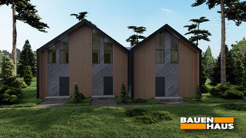 Цей проєкт був створений з метою надати майбутнім власникам вишуканий та функціональний простір для життя або відпочинку. Таунхаус складається з трьох частин, які забезпечують приватність та комфорт для кожної родини. Великі панорамні вікна заповнюють приміщення природним світлом, надаючи відчуття простору та з’єднання з навколишнім середовищем.
