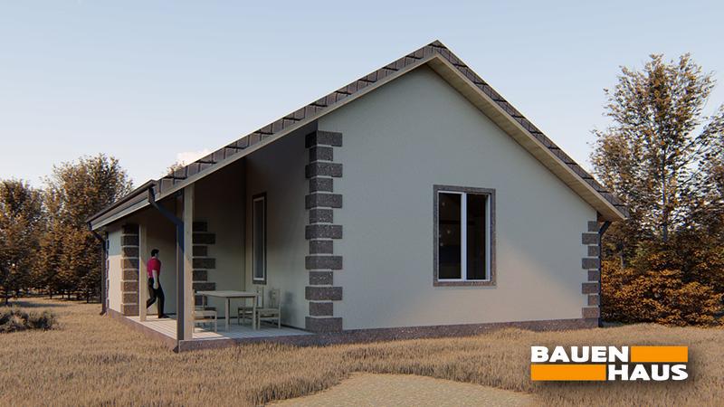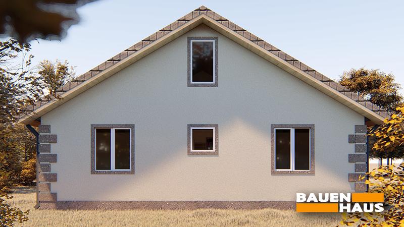 Мансардний канадський будинок у класичному архітектурному стилі загальною площею 76 м2 із вбудованою під загальний дах терасою площею 14 м2. Мансардний поверх розташований лише над частиною будинку, друга частина зашита гіпсокартоном.