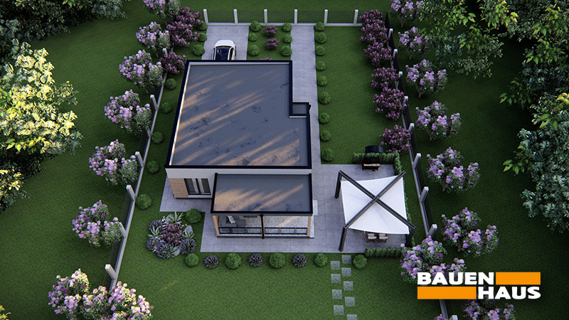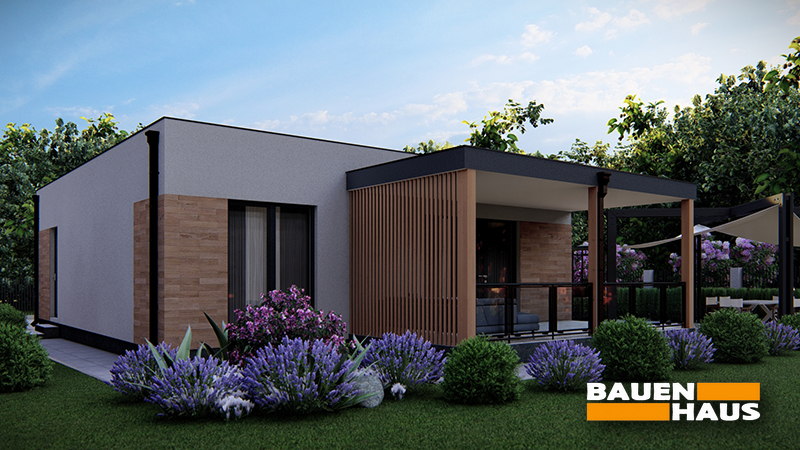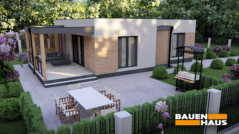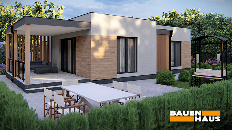 Проєкт будинку «Лума» – це одноповерхове рішення у сучасному стилі, спроєктоване під будівництво за нашою технологією з СІП панелей. Лаконічна архітектура з поєднанням світлих і дерев’яних фасадних елементів зробить будинок за цим проєктом чудовим рішенням для заміського життя.