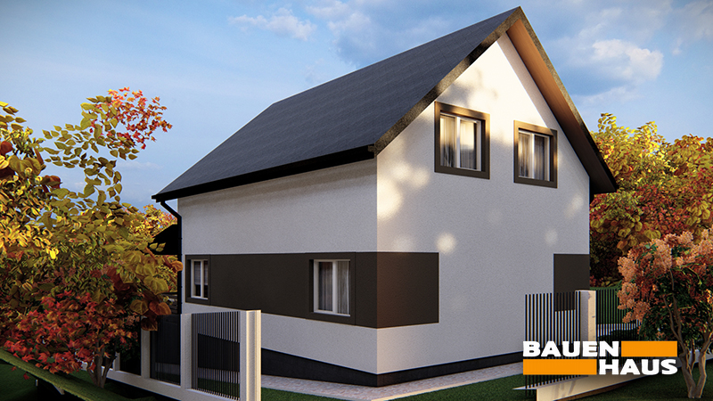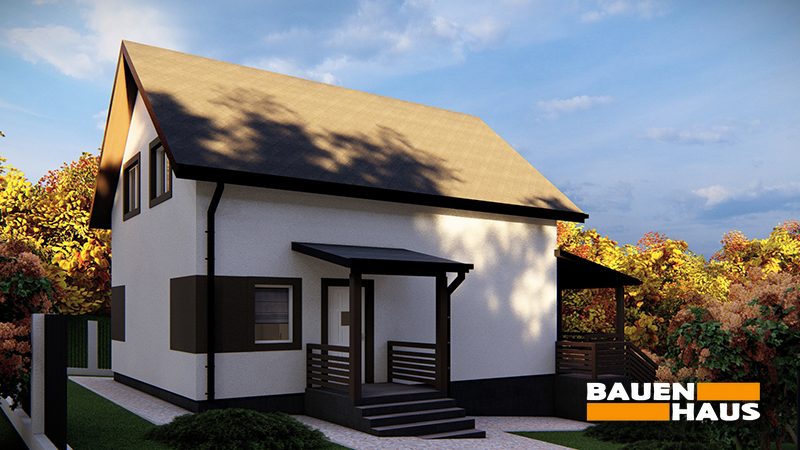 Проєкт двоповерхового будинку з мансардою та терасою загальною площею 117 м². Раціональне планування забезпечує зручність для постійного проживання сім’ї та зручно приймати гостей.
