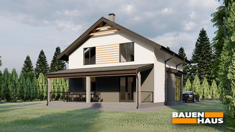 Сучасний СІП котедж з другим мансардним поверхом і великою терасою та 3 спальнями.