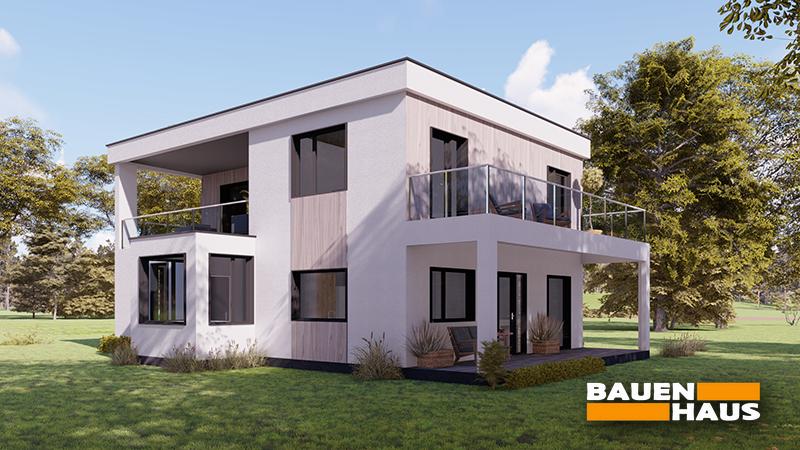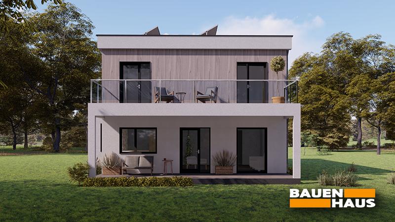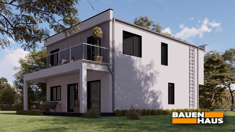 Сучасний стильний двоповерховий котедж СІП з балконом.