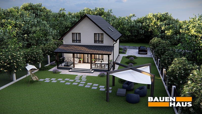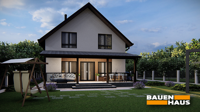 Загальна площа будинку – близько 140 м², що робить його універсальним рішенням як для постійного проживання, так і для заміського будинку.
