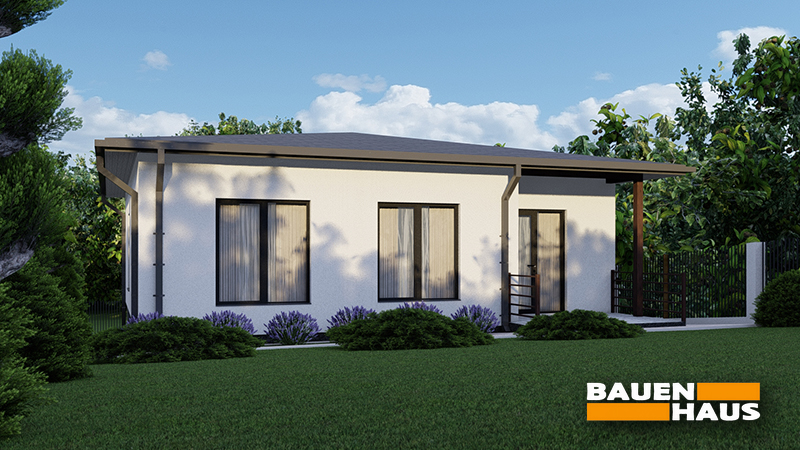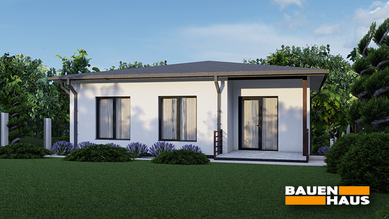 Проєкт одноповерхового будинку «Єден» площею 87,6 м² розроблений як практичне рішення для постійного проживання або використання як заміський дім. Завдяки компактним розмірам він підходить для ділянок невеликої площі, але при цьому забезпечує повний набір необхідних приміщень.