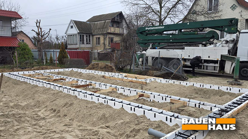 Бауен Хаус » Новини та анонси » Залили фундамент під новий обʼєкт – канадський будинок 87 м2